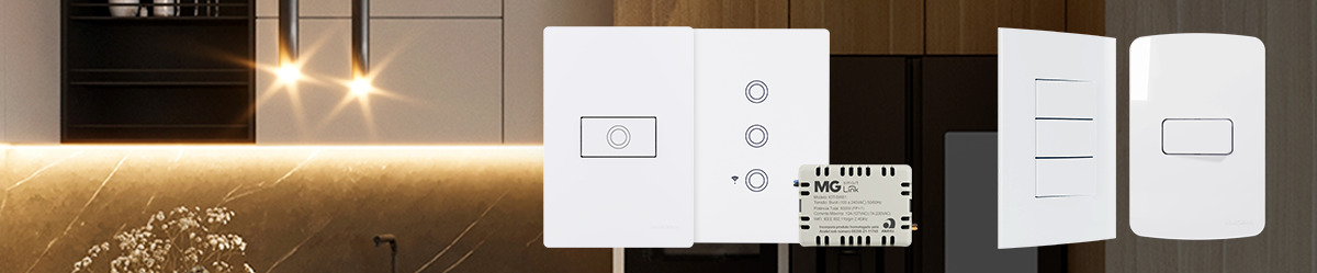 Os interruptores inteligentes touch são uma alternativa mais avançada, pois permitem o controle da através de uma conexão Wi-Fi. Com eles, é possível realizar diferentes funções, como programar horários específicos para ligar ou desligar as luzes de determinados ambientes, além de controlar a iluminação por comando de voz, com o auxílio de assistentes como Alexa ou Google Assistant.