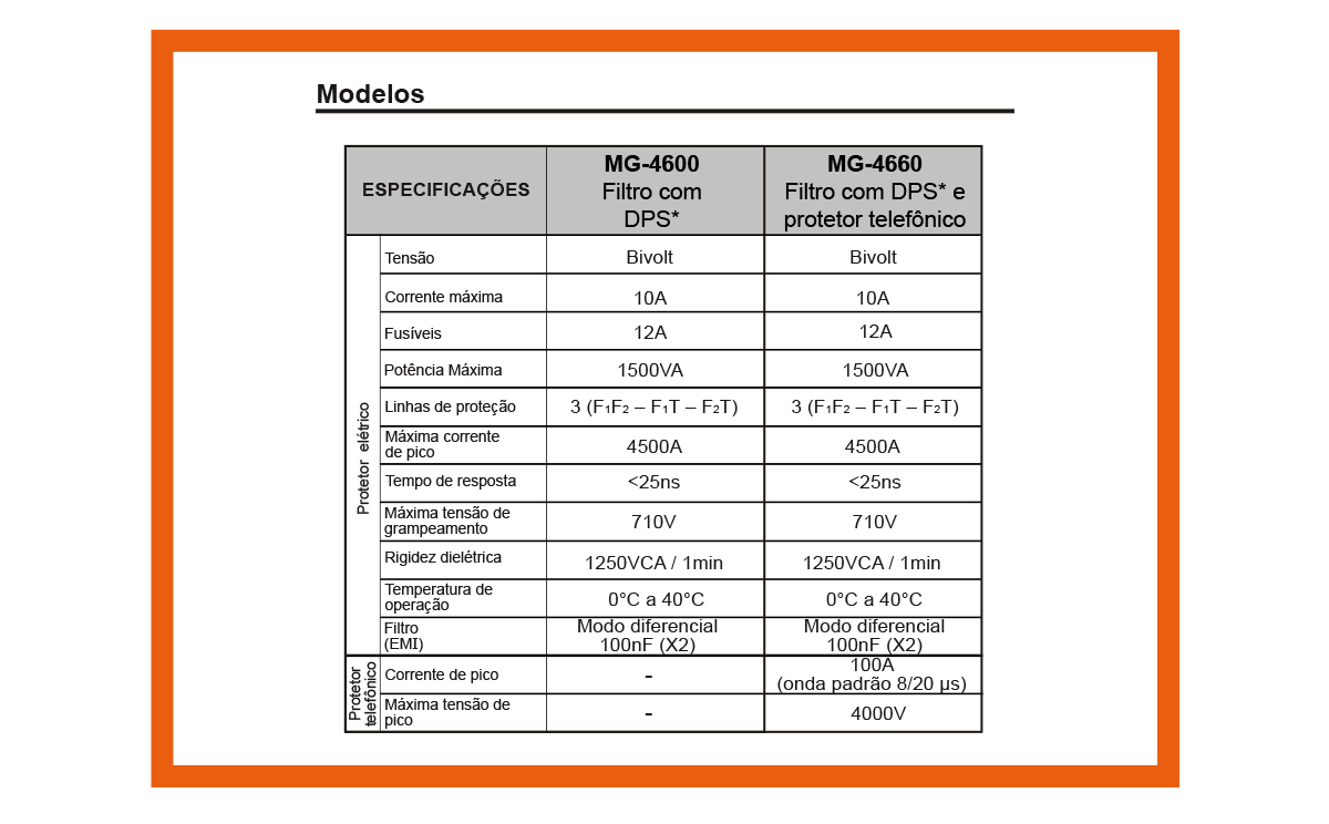 Antes de comprar um filtro de linha, pesquise com atenção as especificações, para saber quais são as proteções que o produto oferece. De forma geral, quanto mais funções o filtro incorpora, maior será seu custo. Se o que você quer é somente uma “extensão elétrica” com proteção contra curtos-circuitos e um interruptor “liga-desliga” geral, um filtro de linha básico será suficiente. Porém, se pretende proteger uma TV contra surtos elétricos, adquira um filtro de linha com DPS (dispositivo de proteção contra surtos). Veja os exemplos abaixo: