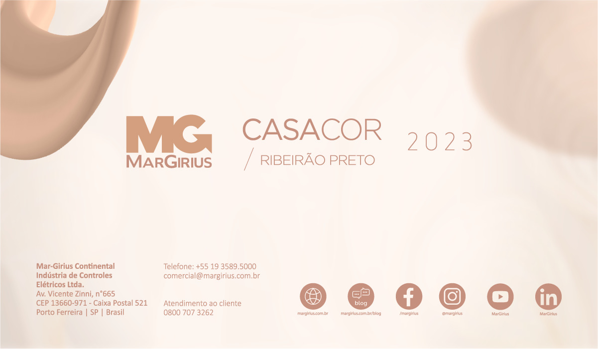 Mais uma vez, a MarGirius está participando da CASACOR Ribeirão Preto, agregando possibilidades ao tema “Corpo & Morada”, com as Linhas Infiniti, Infiniti Plus Colors, Sleek, Sleek Colors, Clean e IOT.