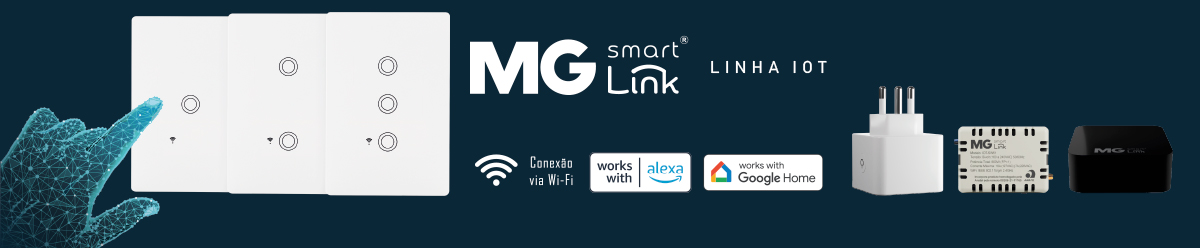 Produtos para casa inteligente, que permitem o controle de aparelhos e instalações via Bluetooth ou Wi-Fi, através do aplicativo MG Smart Link.