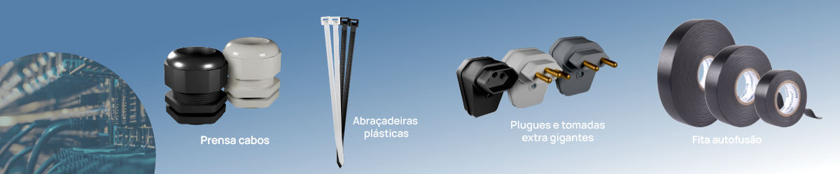 Prensa cabos, abraçadeiras plásticas, plugues e tomadas extra gigantes, além da fita autofusão, agora fazem parte da linha de acessórios elétricos MarGirius.