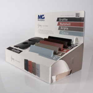 O display de apresentação Sleek colors possui sete placas “Espelhos” das seguintes cores: