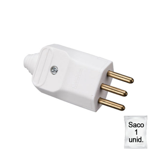 CÓD: Plugue desmontável 2P+T 180º de 10A com prensa cabos - Plástica 1 unid.